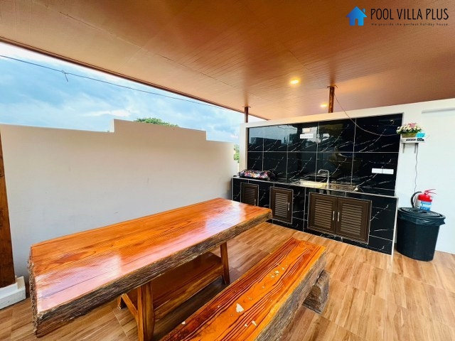 - มี 2 ห้องครัว [1 ครัวฝรั่ง(ในตัวบ้าน) และ 1ครัวไทย(ริมสระว่ายน้ำ)]