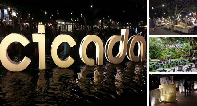 ……….ภายในตลาดจักจั่นหรือ The Cicada Market จะแบ่งออกเป็น 4 ส่วนหลักๆ คือ ส่วนของการจัดแสดงศิลปะ (Art Indoor) ส่วนของศิลปะการแสดง (Art of Act) ส่วนของสินค้าทางศิลปะ (Art A La Mode) และส่วนของศิลปะในการกิน (Art of Eating) และถ้าหากเดินมาทางด้านหน้าของโครงการ จะเห็นป้ายชื่อ “Cicada ตลาดจักจั่น” ขนาดใหญ่ใกล้ๆ กับบริเวณลานน้ำพุซึ่งจุดนี้ก็เป็นอีกมุมหนึ่งที่นักท่องเที่ยวส่วนใหญ่นิยมมาถ่ายรูปเช็คอินกัน
